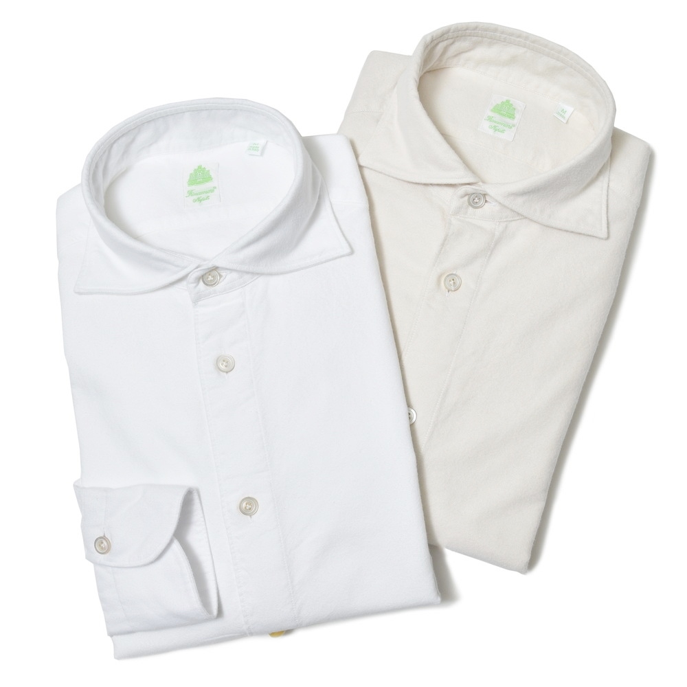 Finamore / フィナモレ ナポリの熟練したクラフツマンシップを今に伝えるFinamore(フィナモレ)のシャツ。ナチュラルな風合いが特徴で、アームホール、ボタン、ガゼット部分は熟練した職人の手によるハンドメイド。 ハンドメイドならではの柔らかな風合いとストレッチのような着心地が、90年以上の歴史を誇る老舗シャツメーカーフィナモレの大きな特徴です。 |