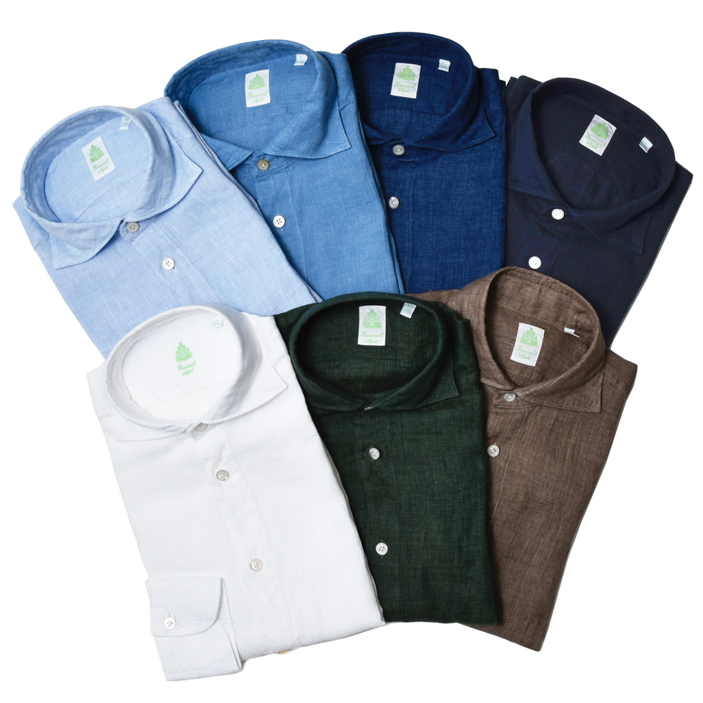 Finamore / フィナモレ ナポリの熟練したクラフツマンシップを今に伝えるFinamore(フィナモレ)のシャツ。ナチュラルな風合いが特徴で、アームホール、ボタン、ガゼット部分は熟練した職人の手によるハンドメイド。 ハンドメイドならではの柔らかな風合いとストレッチのような着心地が、90年以上の歴史を誇る老舗シャツメーカーフィナモレの大きな特徴です。 |