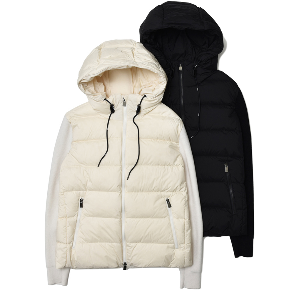 そのスマートな見た目で 身頃はダウン、袖はウールのフード一体型コンビネーションジャケットKEITIE( ケイティー)。 ダウンの膨らみ具合が程よく存在感を主張てくれ、着るだけでスタイリッシュなシルエットが完成します。 身頃はマットに仕上げたナイロン、袖のニット部分には上質なメリノウールを使用し極限まで毛羽を抑えた糸を使うことで、素肌に触れてもチクチクしない仕上がりになっています。 昨今の温暖な日本の冬ではこれぐらいのアウターが一番重宝するのかもしれませんね。 |