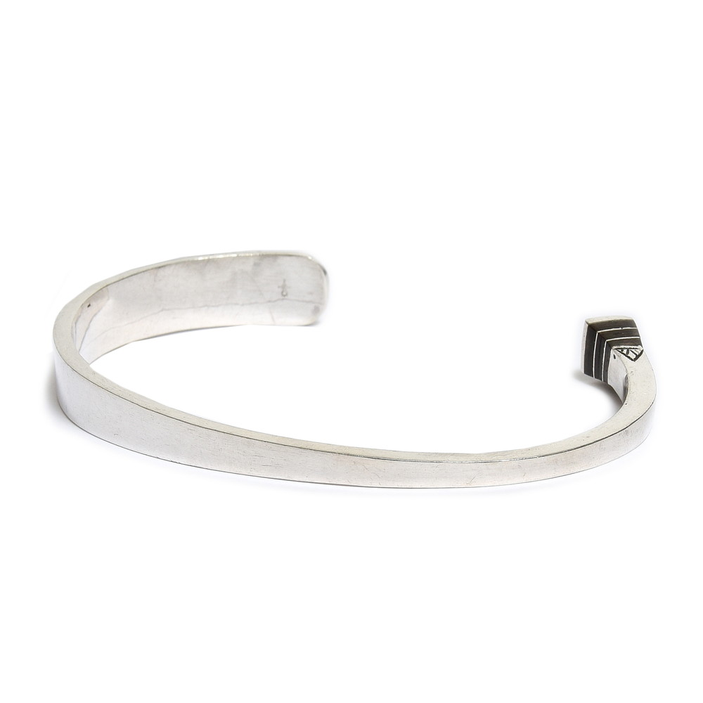 彫金が入っていないのでかなりシンプルなルックスですが、シェイプを工夫したりアシンメトリーにしたりとデザインに凝っていて、フラットな見え方になっていないところが特徴ですね。 アクセサリーとして主張が少なくつけやすいタイプですが、ただシンプルなだけではないというAdawat'n Tuaregならではのこだわりが光る一本です。 |