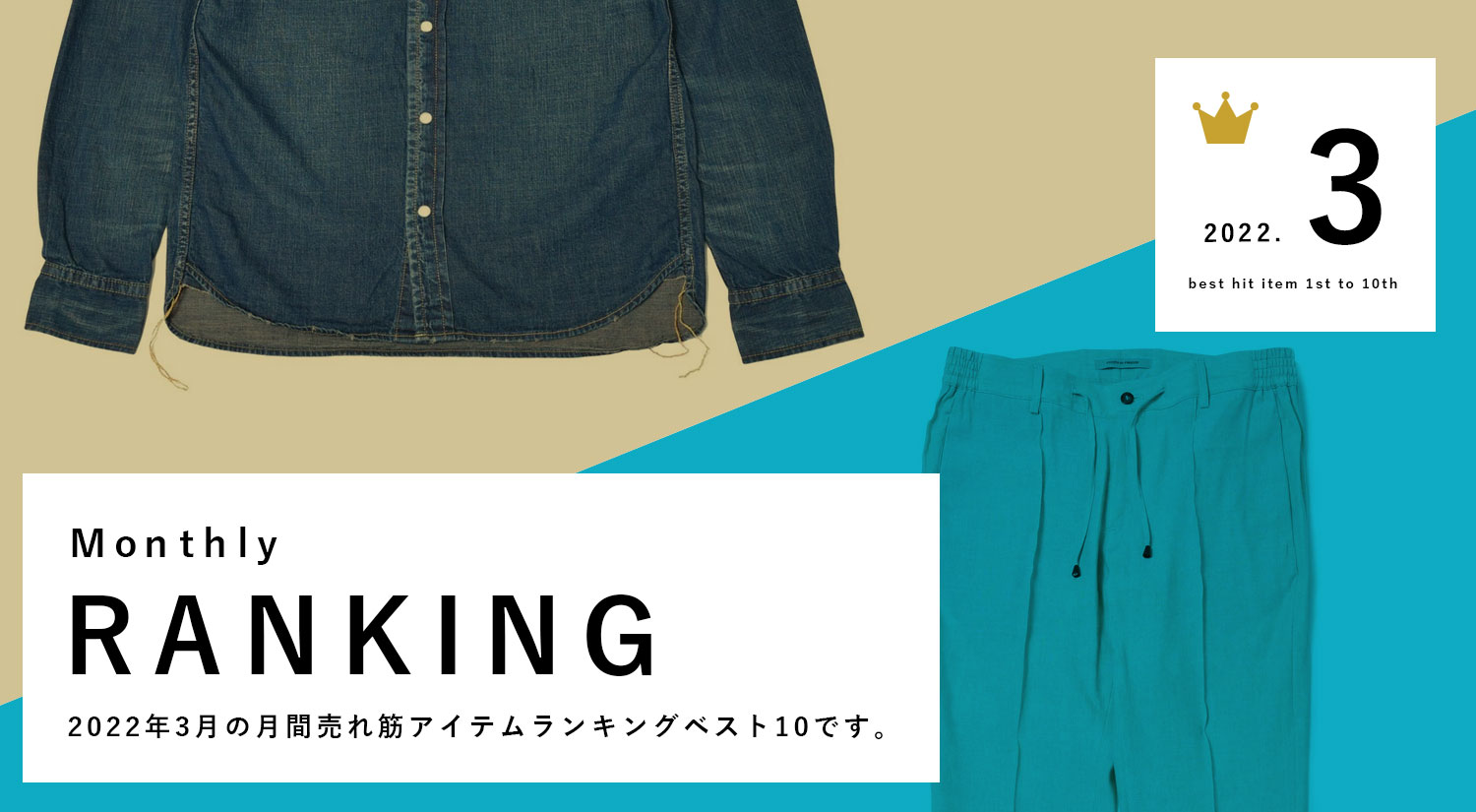 2022年3月の月間売れ筋アイテムランキングベスト10です。