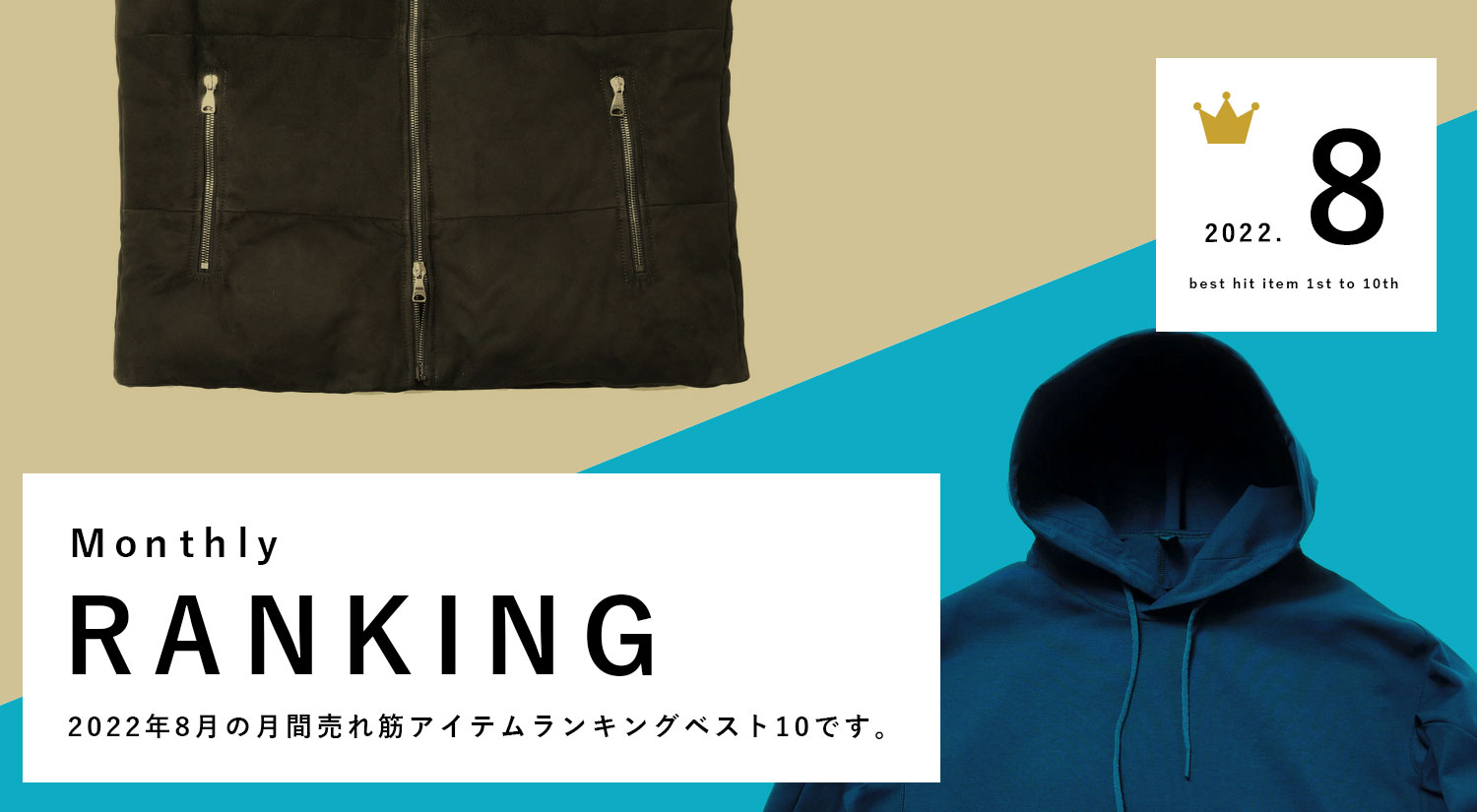2022年8月の月間売れ筋アイテムランキングベスト10です。