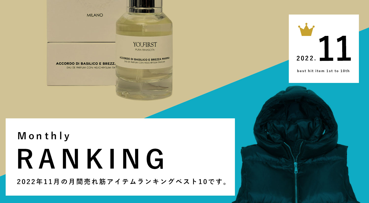 2022年11月の月間売れ筋アイテムランキングベスト10です。